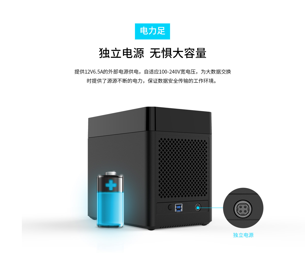 五盤位硬盤柜,八芯磁吸,3秒拆裝,90TB存儲,5Gbp傳輸