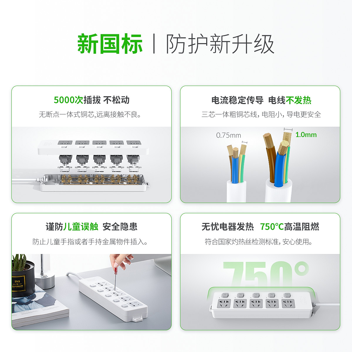 分控式開關,新國標排插,可懸掛使用,按需供電,安全可靠。