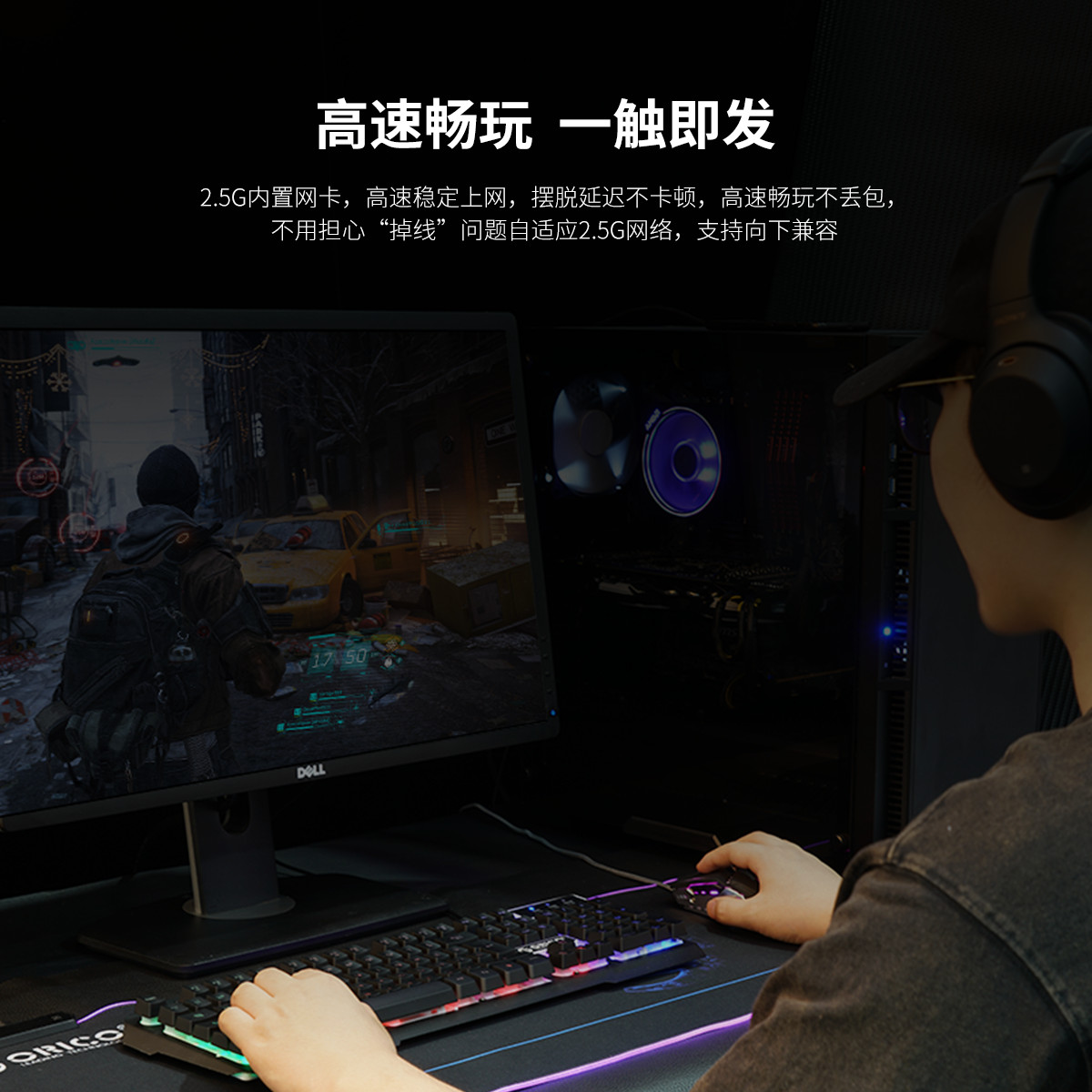 2.5G內(nèi)置網(wǎng)卡,高速穩(wěn)定上網(wǎng),擺脫延遲不卡頓,采用風(fēng)琴導(dǎo)熱片散熱設(shè)計,快速散熱,需在Orico官網(wǎng)下載驅(qū)動安裝