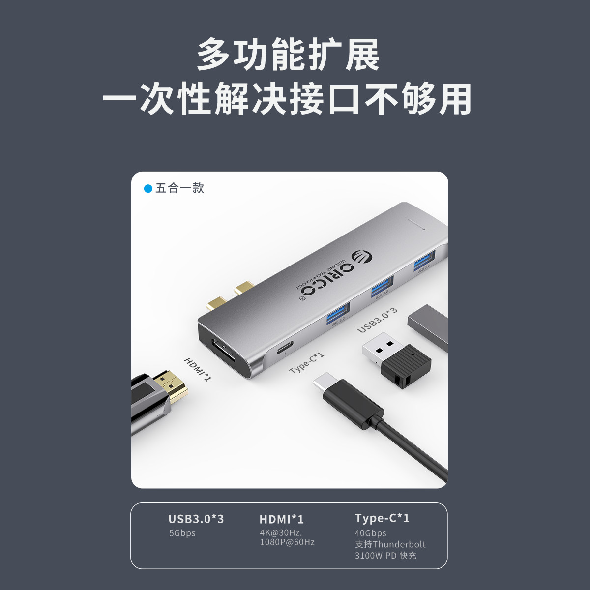 Type-C五合一多功能擴展塢