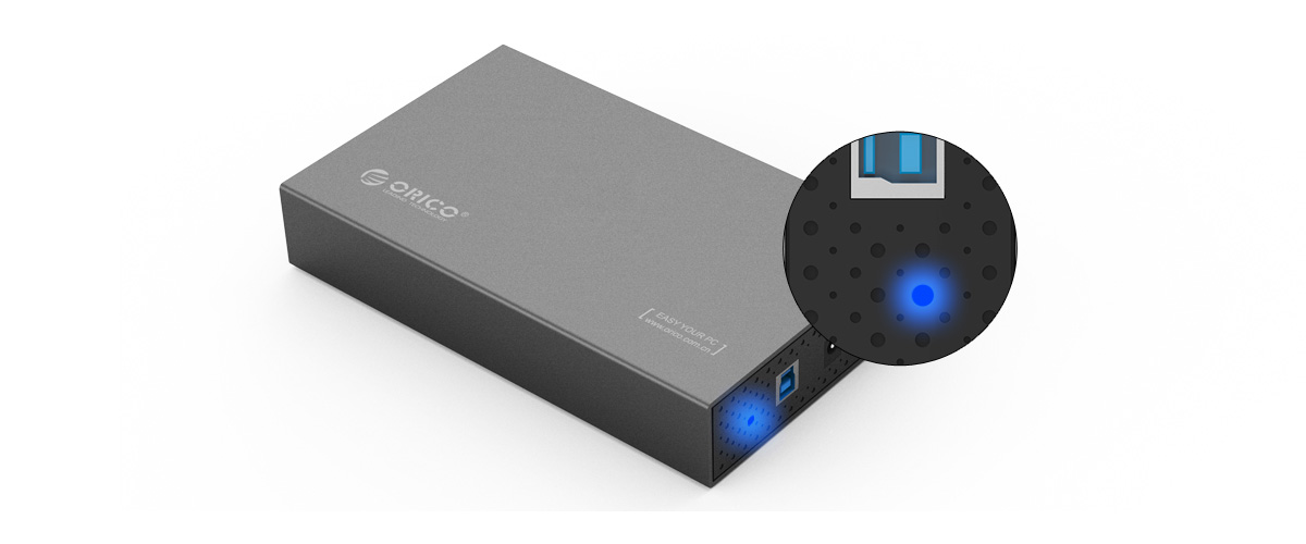 產品配備溫和不刺眼的LED燈,藍燈表示正常,藍紅閃爍表示硬盤正在工作,一眼便可以全程監控硬盤工作狀態。