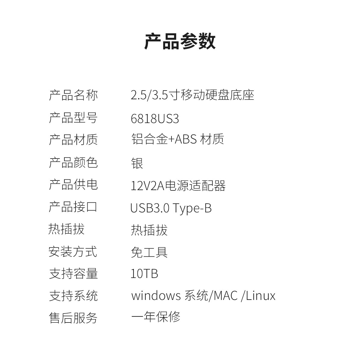 單盤(pán)位2.5/3.5英寸鋁合金USB3.0硬盤(pán)底座