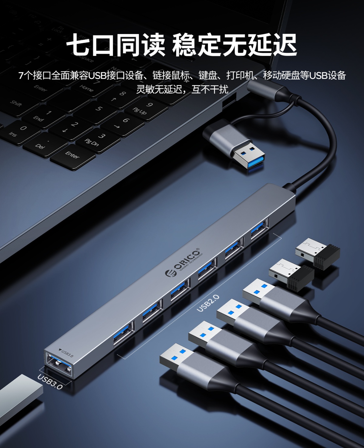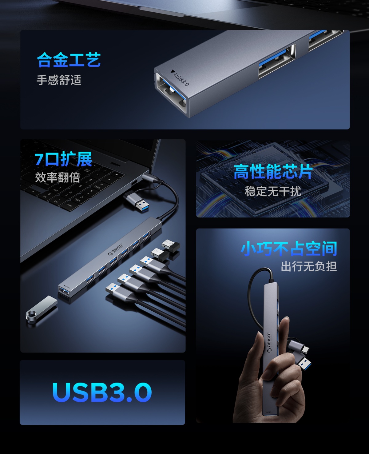 2合1鋁合金7口迷你USB3.0HUB