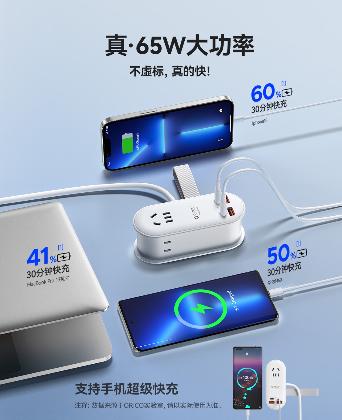 65W氮化鎵超級快充口袋排插