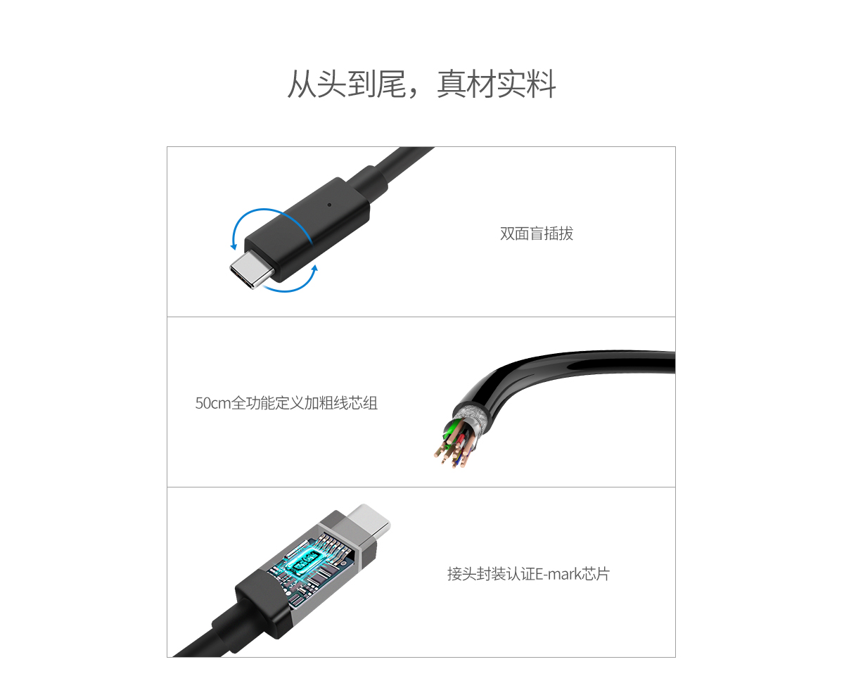 內置全功能E-mark芯片,一線實現全功能,輕松實現便攜大擴展