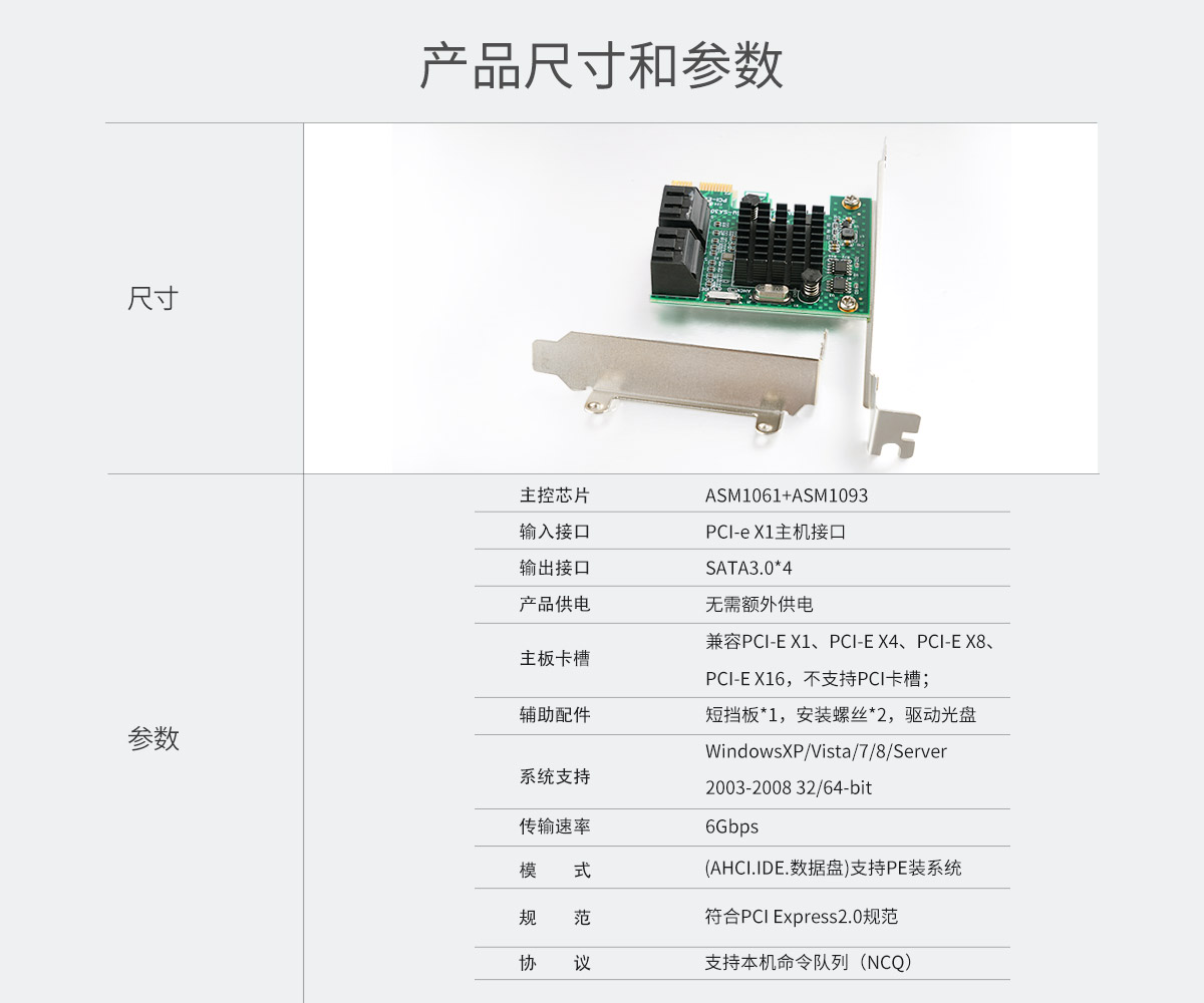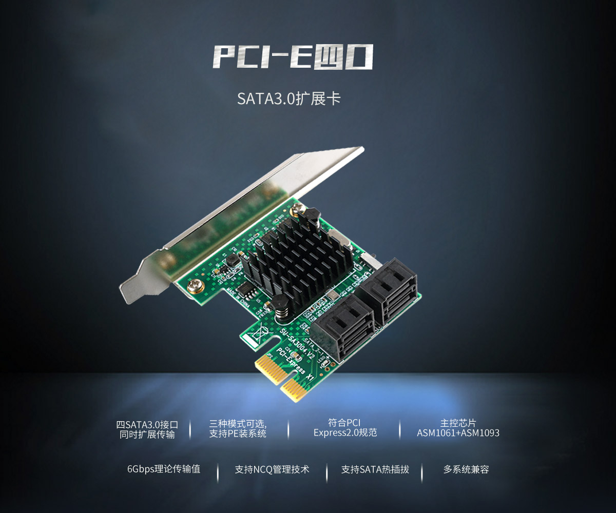 4口SATA3.0 臺式機PCI-E擴展卡,兼容PCI-E X1/4/8/16