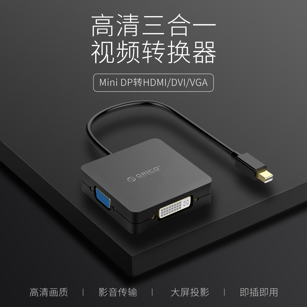 Mini DP轉HDMI/VGA/DVI公對母高清三合一視頻轉換器