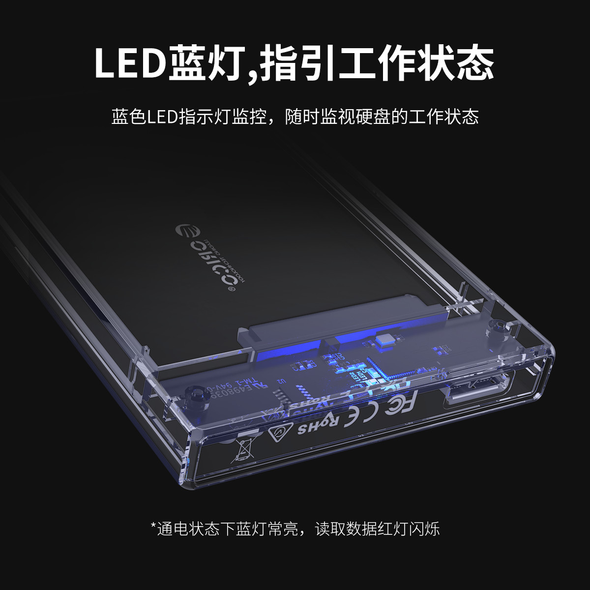 PC透明材質(zhì)2.5寸SATA USB3.0移動硬盤盒,機身全透視效果
