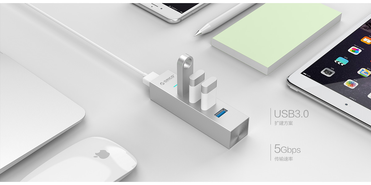 4口鋁合金USB3.0分線器,分離式數據線