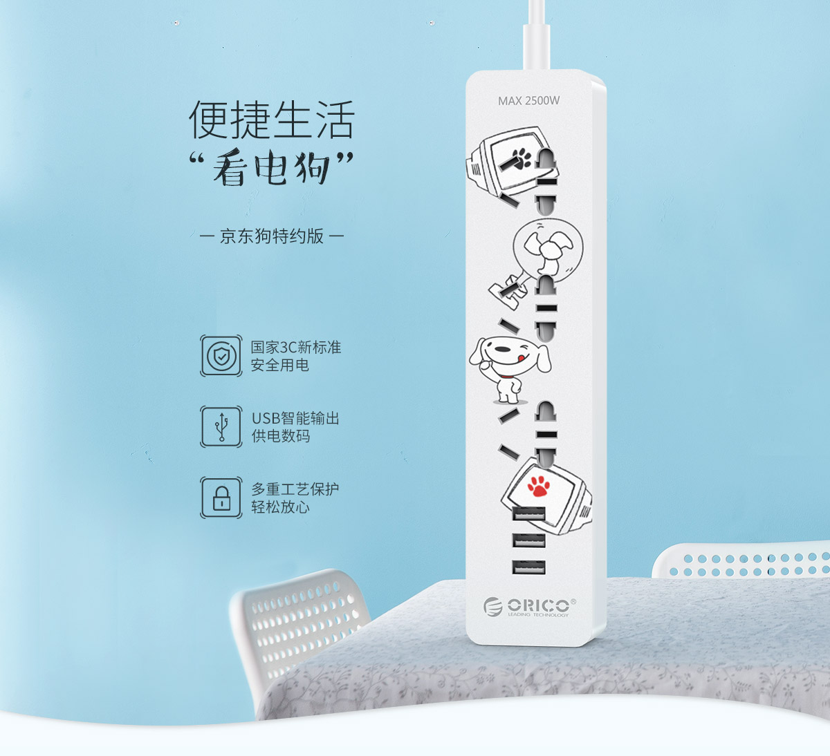 新國標便攜桌面式排插京東狗特約版,2500W大功率