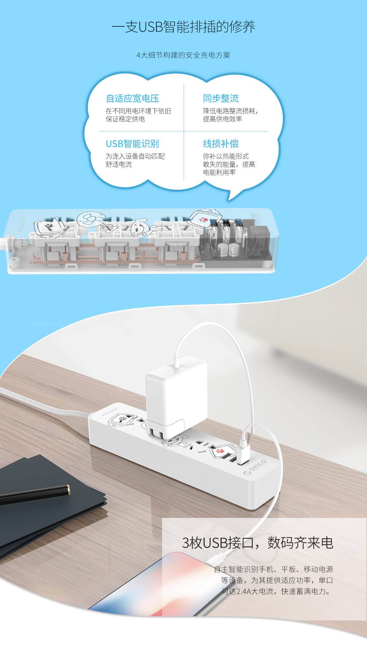 京東狗特約版3AC口3USB口智能排插